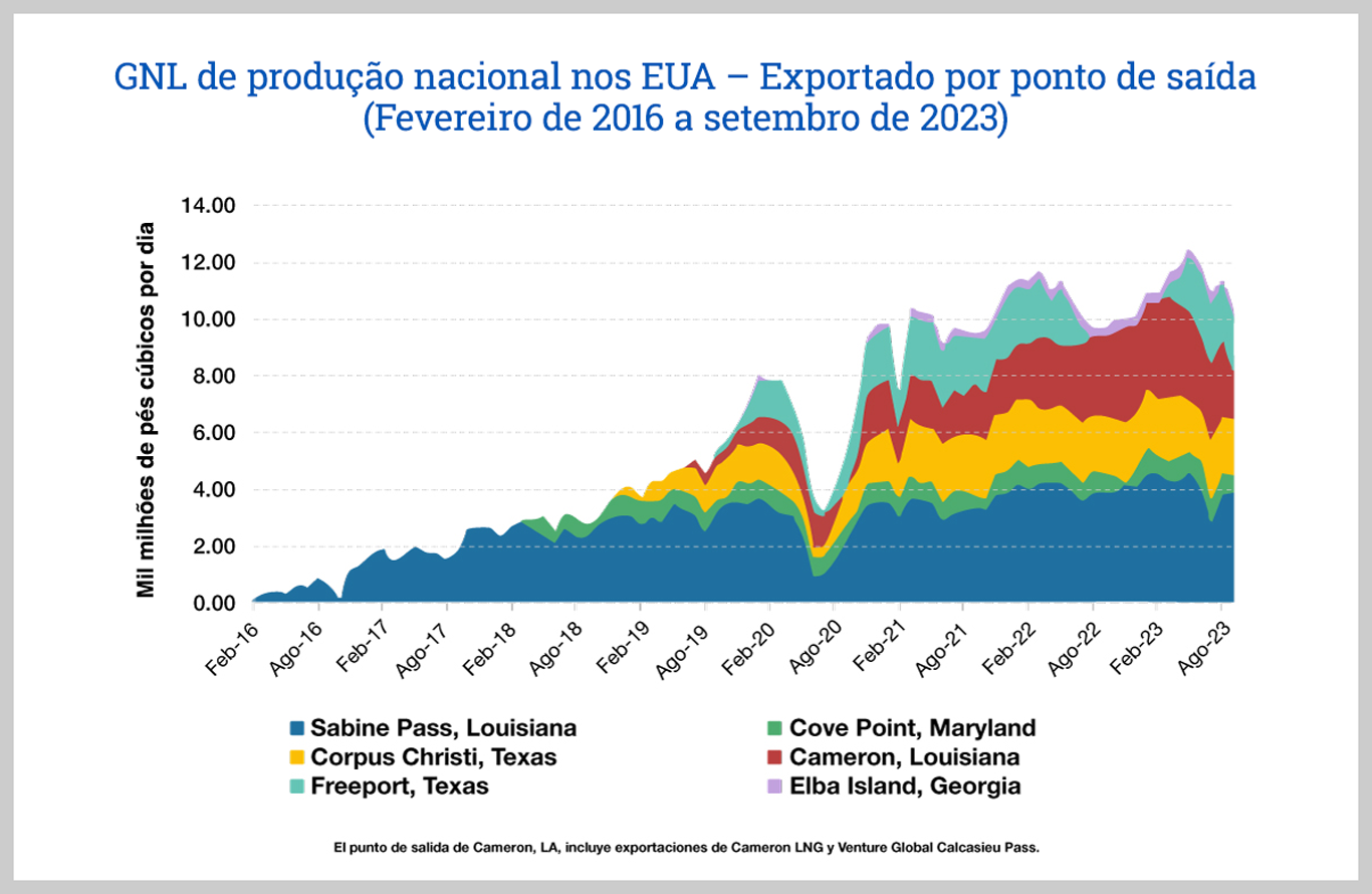 - O papel estratégico dos EUA: os Estados Unidos tornaram-se um importante exportador de GNL, enviando grandes volumes para a Europa, Ásia e América. As estatísticas mais recentes do relatório mensal de GNL do Departamento de Energia dos EUA (DOE), de novembro de 2023, destacam exportações em níveis sustentados, com crescimento adicional previsto..